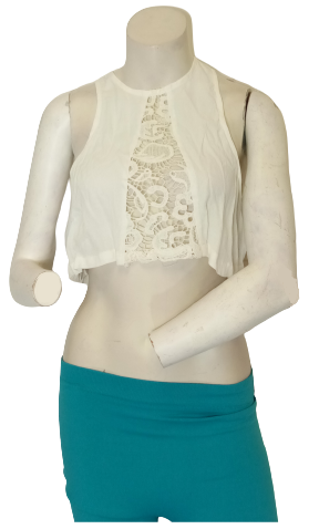 Milau White Sleeveless Lace Detail Open Back Crop Top