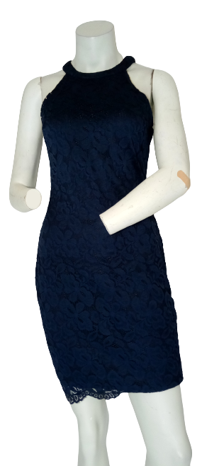 Measeor lace covered flowers dress navy