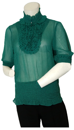 Minuet green/black sheer ruffle neckline plaid blouse