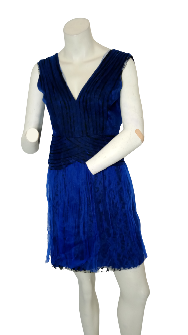 Minuet sewn pleats contrast layered dress blue/black