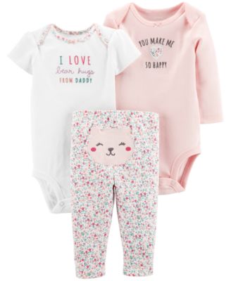 Carters Baby Girls 3-Pc. Cotton Bodysu Pink Newborn