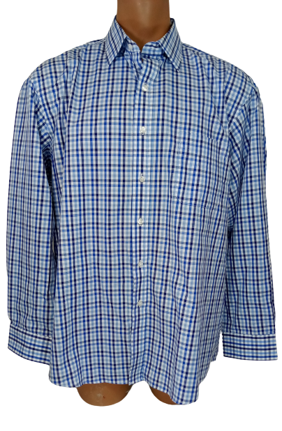 CLUB ROOM BLUE GINGHAM PLAID LONG SLEEVE SHIRT 18, 34/35