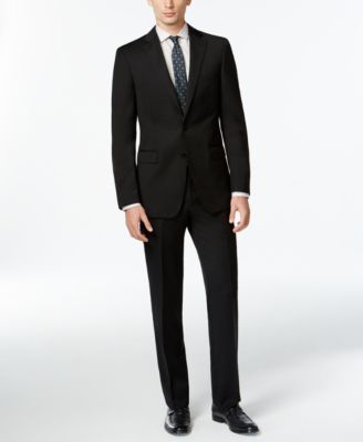 Calvin Klein Solid Wool Black Slim-Fit Suit Black 36S