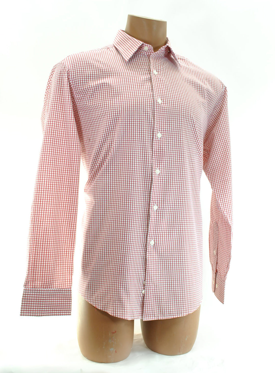 Club Room Red Regular Fit Long Sleeve Boxes Shirt 16 1/2, 34/35