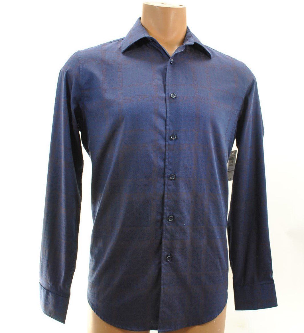 Tasso Elba Navy Long Sleeve Pattern in Boxes Shirt Large