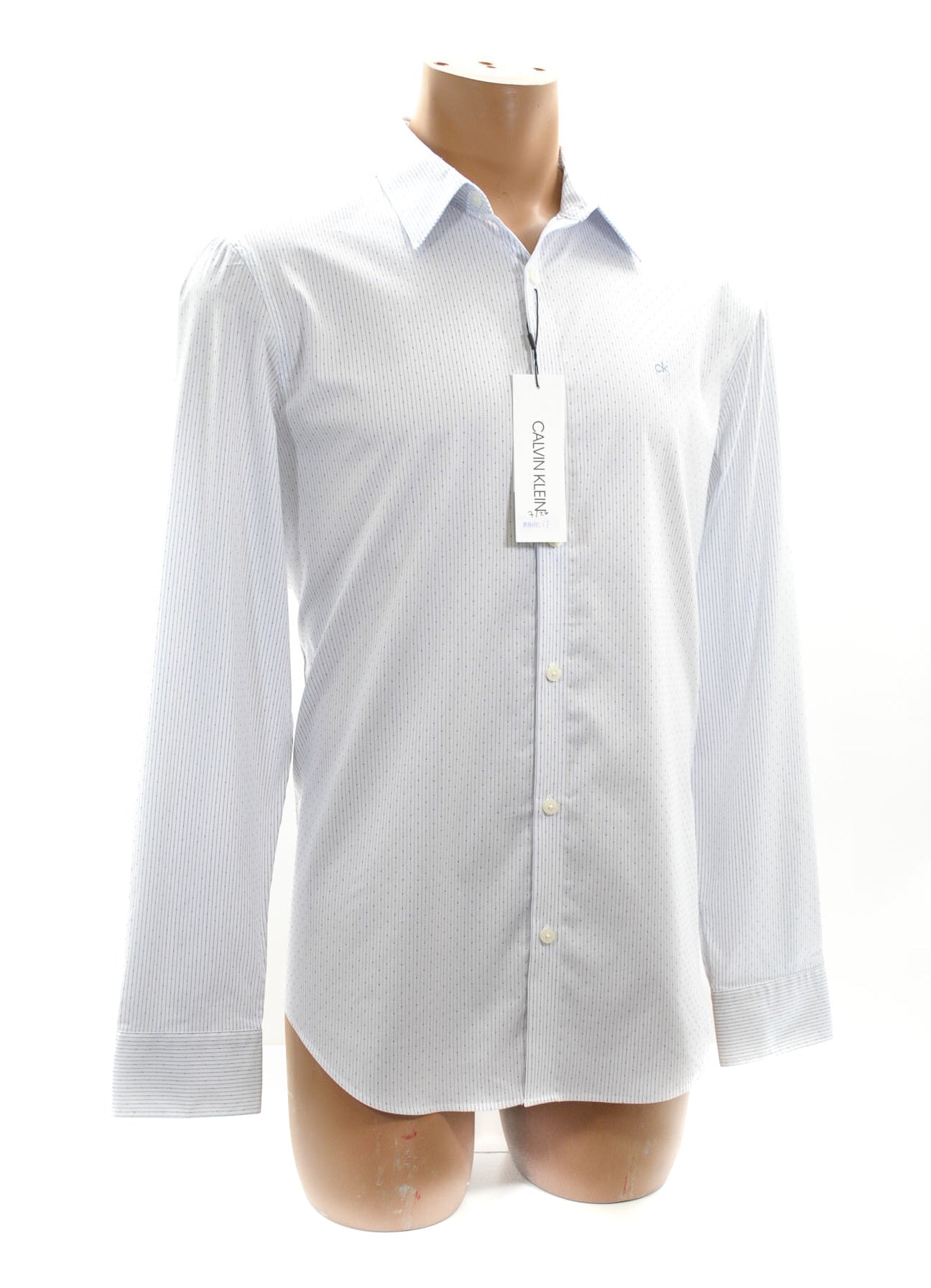 Calvin Klein Brilliant White Long Sleeve Pinstripe Shirt Large