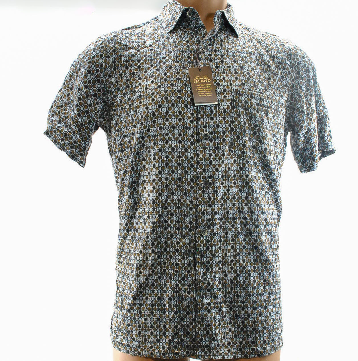 Tasso Elba Black Combo Hexagon Short Sleeve Silk Blend Island Shirt Small