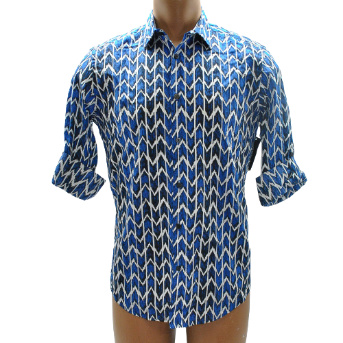Alfani Men Hyper Blue Zig Zag Pattern Long Sleeve Shirt Small