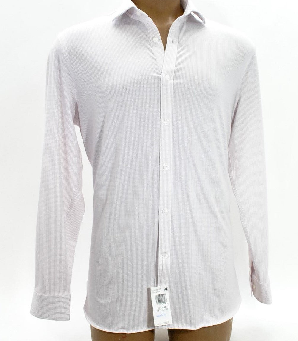 Michael Kors Pink Glaze Airsoft Stretch Slim Fit Pinstripe Check Shirt M 15 1/2, 34/35