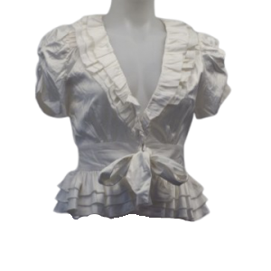 Runway Paris White Short Sleeve Ruffled Top with Bow