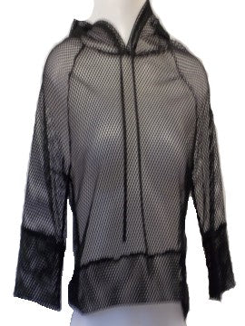 I>R Black Mesh Hooded 3/4 Length Sleeve Crop Top