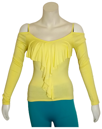 Vizio USA Yellow Long Sleeve Cold Shoulder Ruffled Blouse