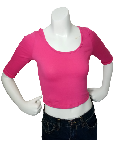 Pink 3/4 Sleeve Crop Top. 94 Cotton