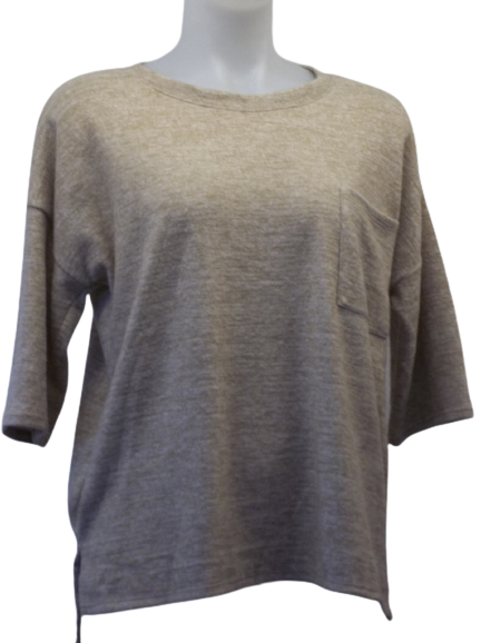 Zenana Outfitters Tan 3/4 Length Sleeve Sweater with Breast Pocket