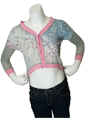 Libertalia Gray/Pinks/Blue Floral/Stripe Long Sleeve Snap Front Sweater