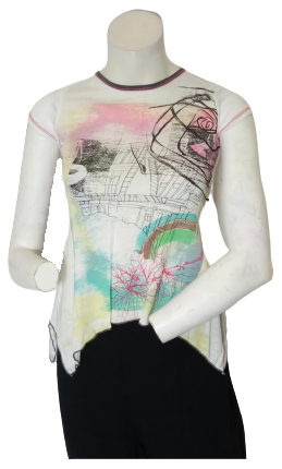 Libertalia White/Pink Printed Burnout Stripe Short Sleeve Blouse