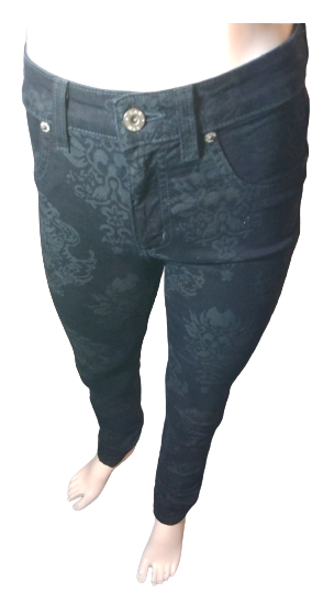 Black Black/Grey Printed Pattern Jeans 98%Cotton, 2% Spandex