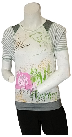 Libertalia Gray/White Stripe Sleeve Patterned Blouse