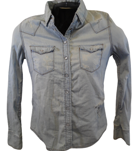 Carmar Distressed Denim Long Sleeve Button Down Light Wash Blouse
