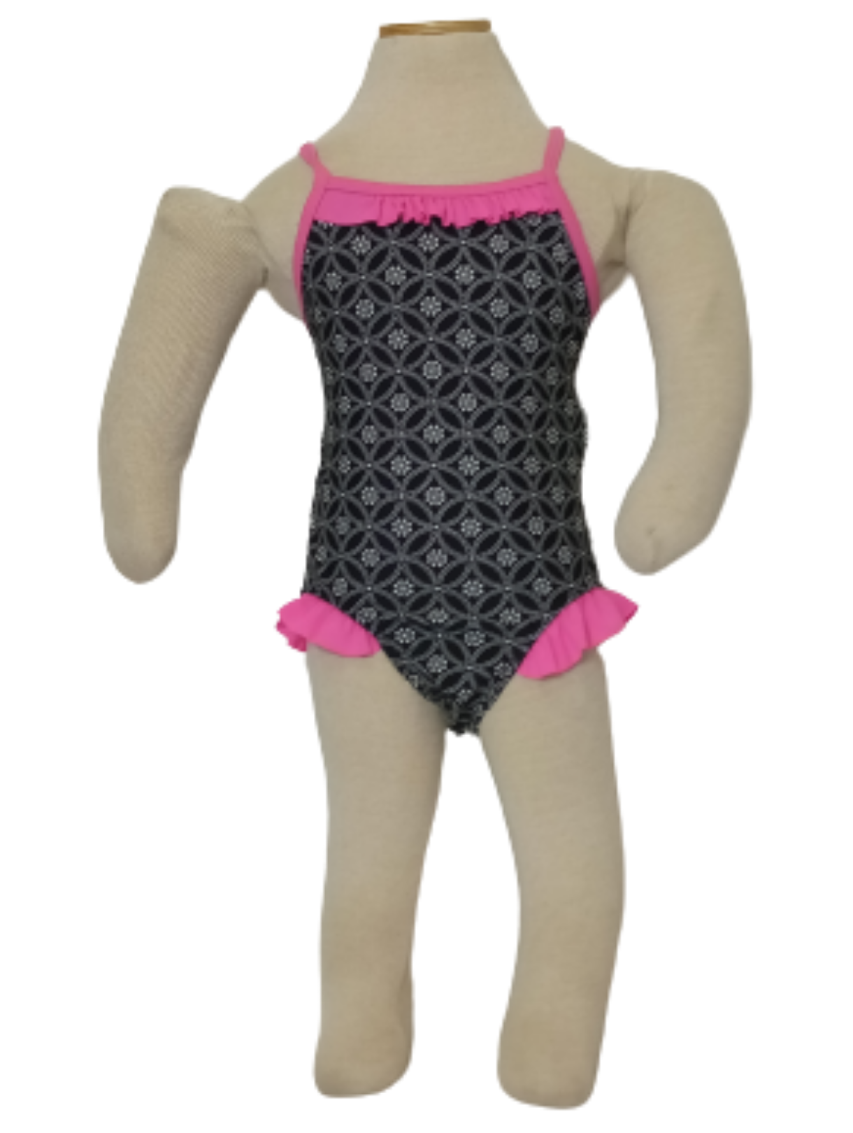 Xhilaration Black Patterned One Piece Swimsuit Pink Ruffles Youth 1
