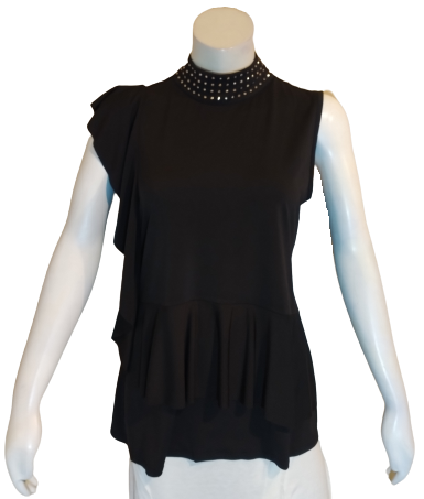 Black Sleeveless Tunic with Gold Stud Collar 95% Polyester, 5% Spandex