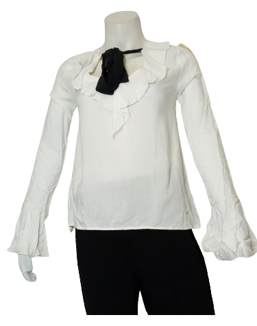 Dream Style Ruffle Detail Tie-Neck Blouse - osfa