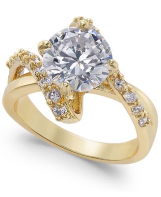 Charter Club Gold Plate Crystal Bypass Ring Gold 9
