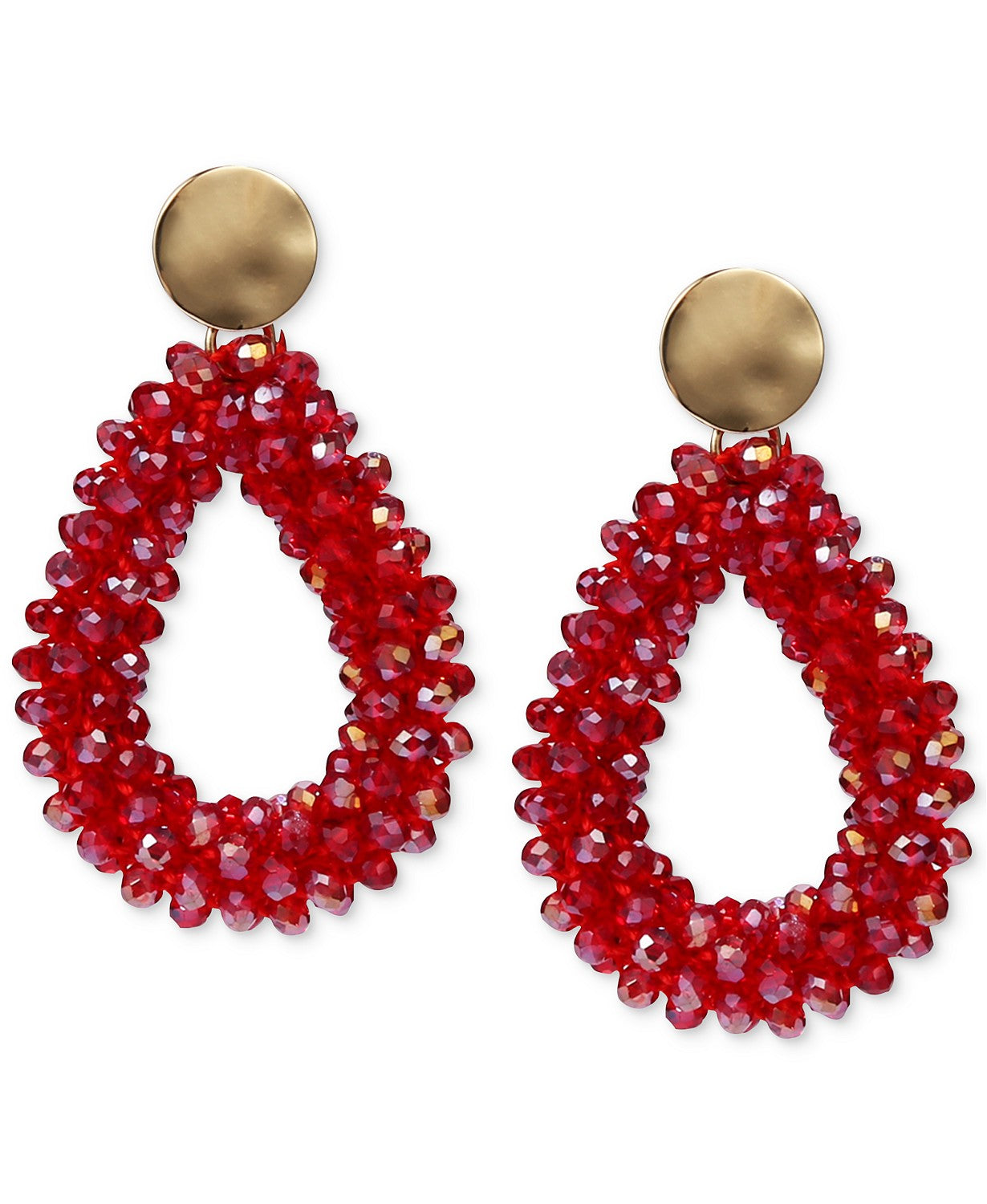 Style Co Gold-Tone Beaded Open Drop Earrings Red