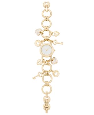 Charter Club Women's Gold-Tone Key Charm Bracelet Watch. Charter Club presents a key piece for your collection of pretty fashion watches in shiny gold-tone mixed metal and white enamel.