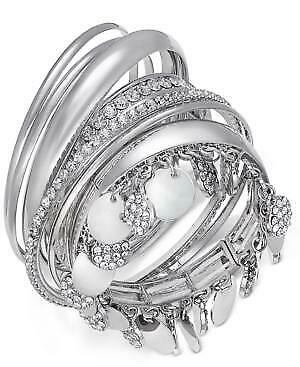 Thalia Sodi Silver-Tone Faux-Snakeskin Pave Disc Bangle Bracelet Set. Styled together or alone, this wear-everywhere set of bangle bracelets lets you create your own look from classic to glam. Silver-tone mixed metal with crystal stones, pavé discs, and faux snakeskin detail.