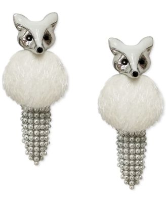 INC International Concepts silver-Tone Bead Faux Fur Fox White