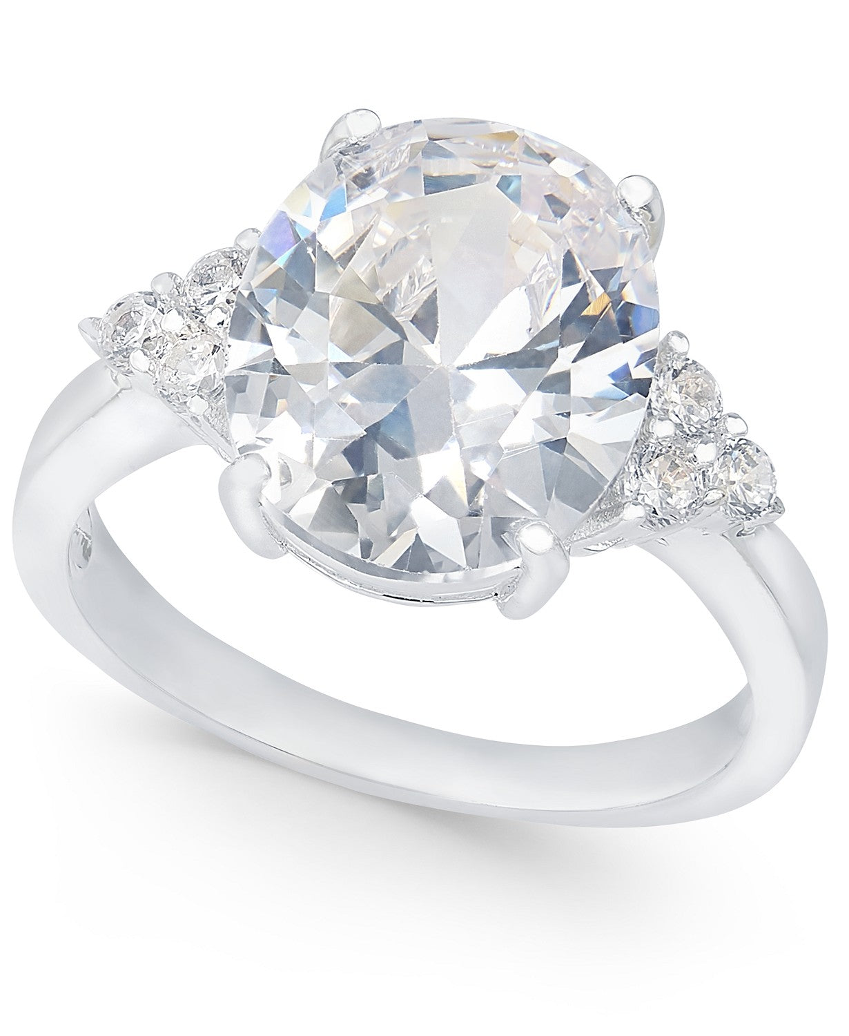Charter Club Fine Silver Plate Crystal Ring Silver 7