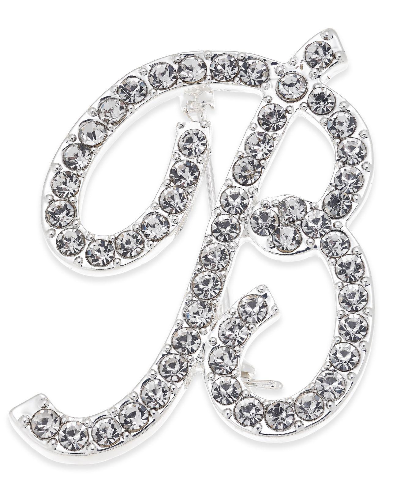Charter Club Silver-Tone Crystal Initial Pin "B"