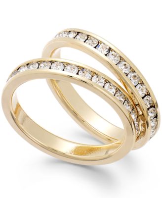 Charter Club Gold-Tone Glass Stone Ring Duo Gold 9