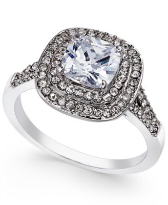 Charter Club Double Halo Crystal Center Rin Silver 6