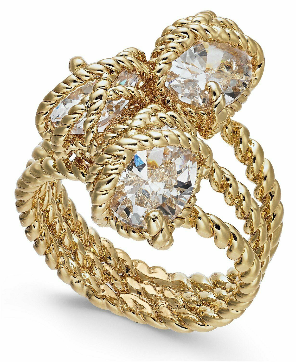 Charter Club Crystal Stone Trio Rope Ring - size 7. Be fearless and fabulous in this avant-garde ring from Charter Club with rope-look detail and a trio of stones.