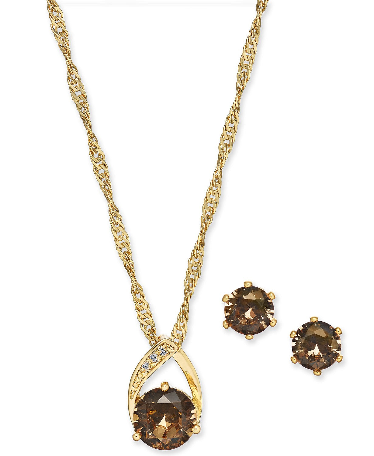 Charter Club 18K Gold Plate Crystal Pendant Necklace/earring set Champagne