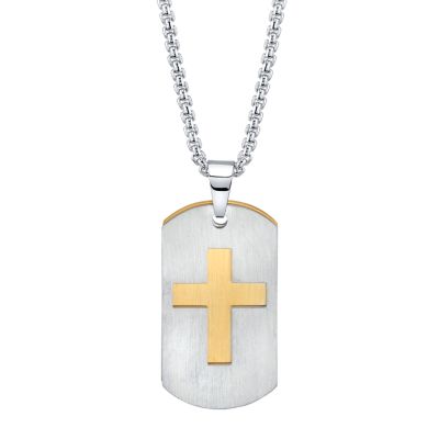 He Rocks He Rocks Double Tag Cross Pend GoldStainless Steel