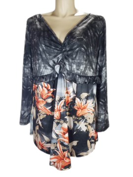 Top, Plus, 5X, Asummetrical, Flowers, Grey, Cream, Orange