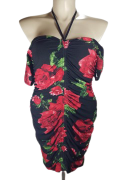 Dress, Plus, 1X, Roses, Self Rusching Front, Black, Red, Green