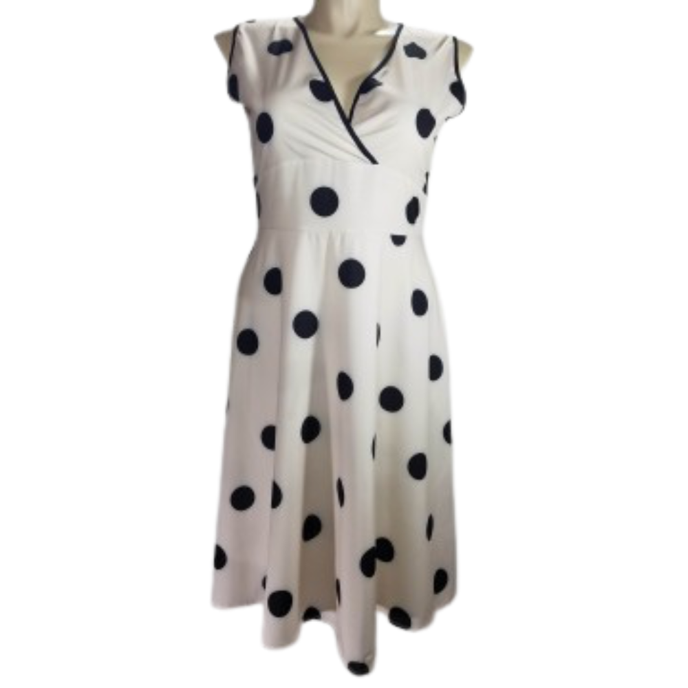 Dress, Plus, XXL, Retro, Polka Dots, Back Zipper, Black, White