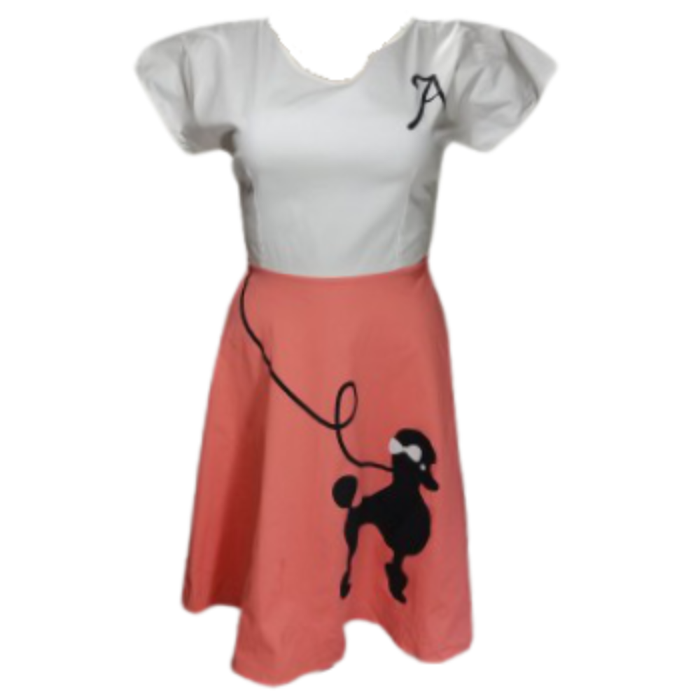 Dress, Plus, XL, Poodle, Back Zipper, White, Orange