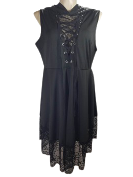 Dress, Plus, 3X, Gothy, Lace Trim, Lace-up, Hood, Black