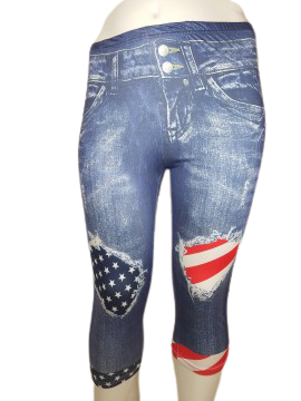Pant, Plus, M, Jeans Print, Stars, Stripes, Blues, Red, White