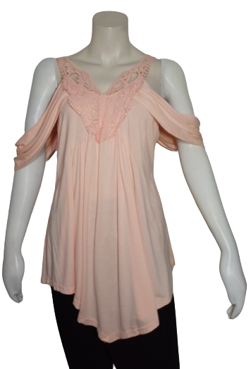 Top, Plus, 1X, Asymmetrical, Lace Trim, Straps, Cut-out Shoulders, Melon