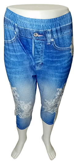 Pant, Plus, 5X, Jean Print, Lace Trim, Blues, White