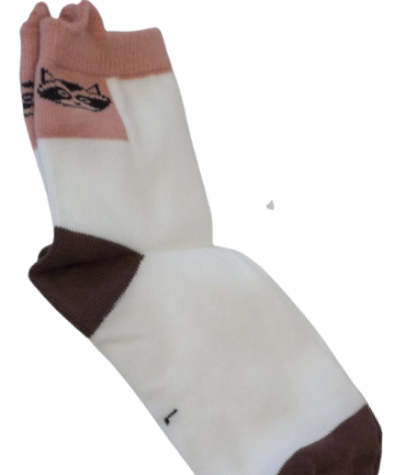 White/Brown Mauve/Black Racoon Pattern Socks Pair