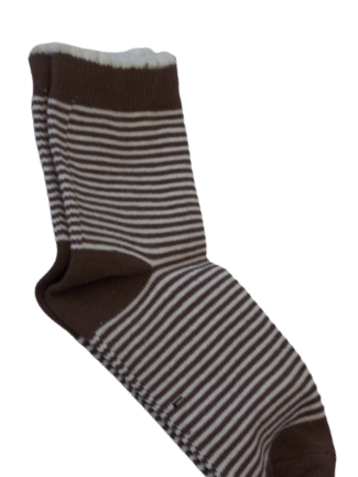 White/Brown Striped Scallop Edge Socks Pair
