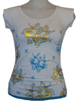 White/Blue Mar-Q gold screen printed t-shirt size S