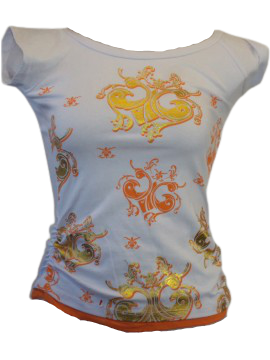 White/Orange Mar-Q gold screen printed t-shirt size S